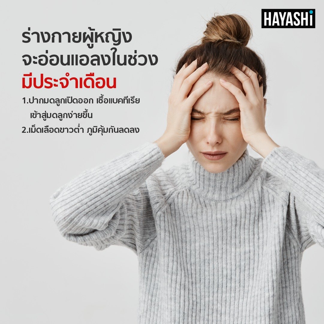 ความเสี่ยงต่อปัญหาสุขภาพนั้นก็มีอยู่ไม่น้อย เนื่องจากในช่วงมีประจำเดือน ระบบภูมิคุ้มกันของร่างกายผู้หญิงจะลดลงทำให้เสี่ยงต่อการติดเชื้อต่าง ๆ ได้ง่าย